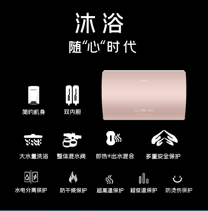 速熱式電熱水器DTR-P30玫瑰金智能恒溫出水