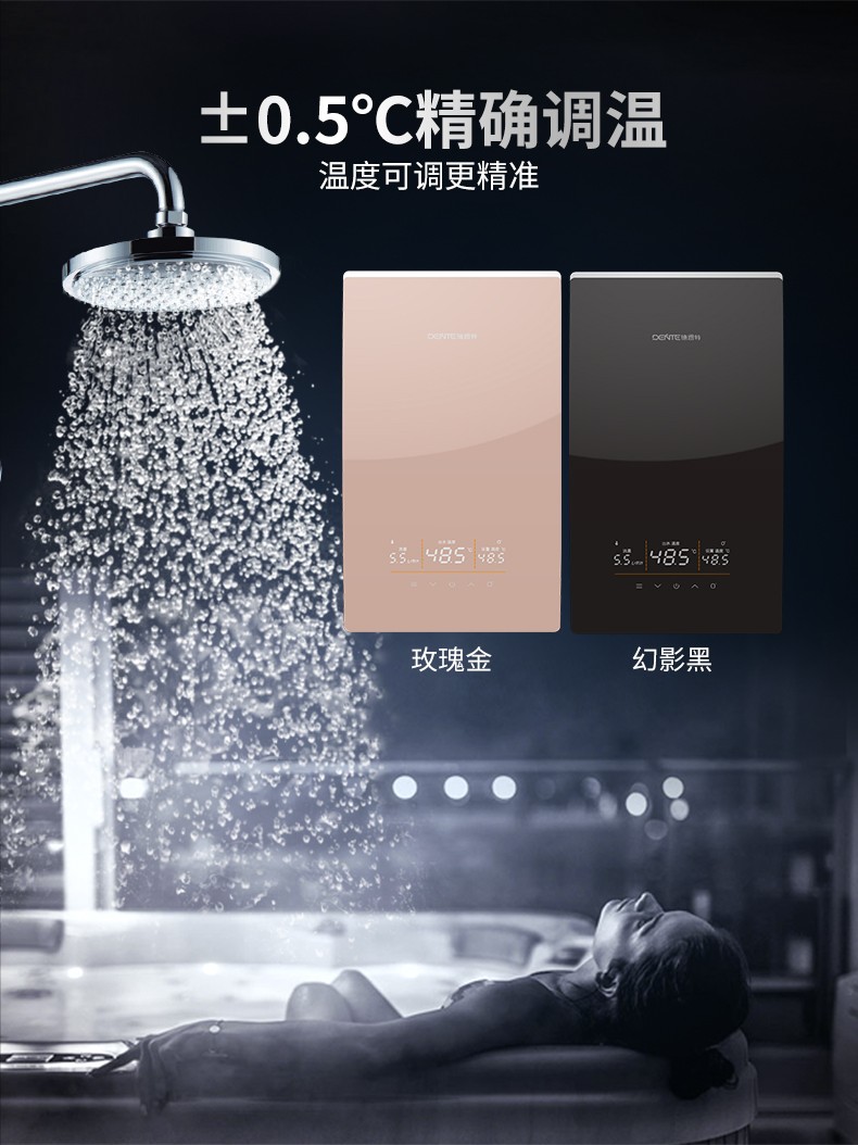 德恩特DTR-P5 | DTR-P5S大水量系列即熱式熱水器 幻影黑、玫瑰金V12系列